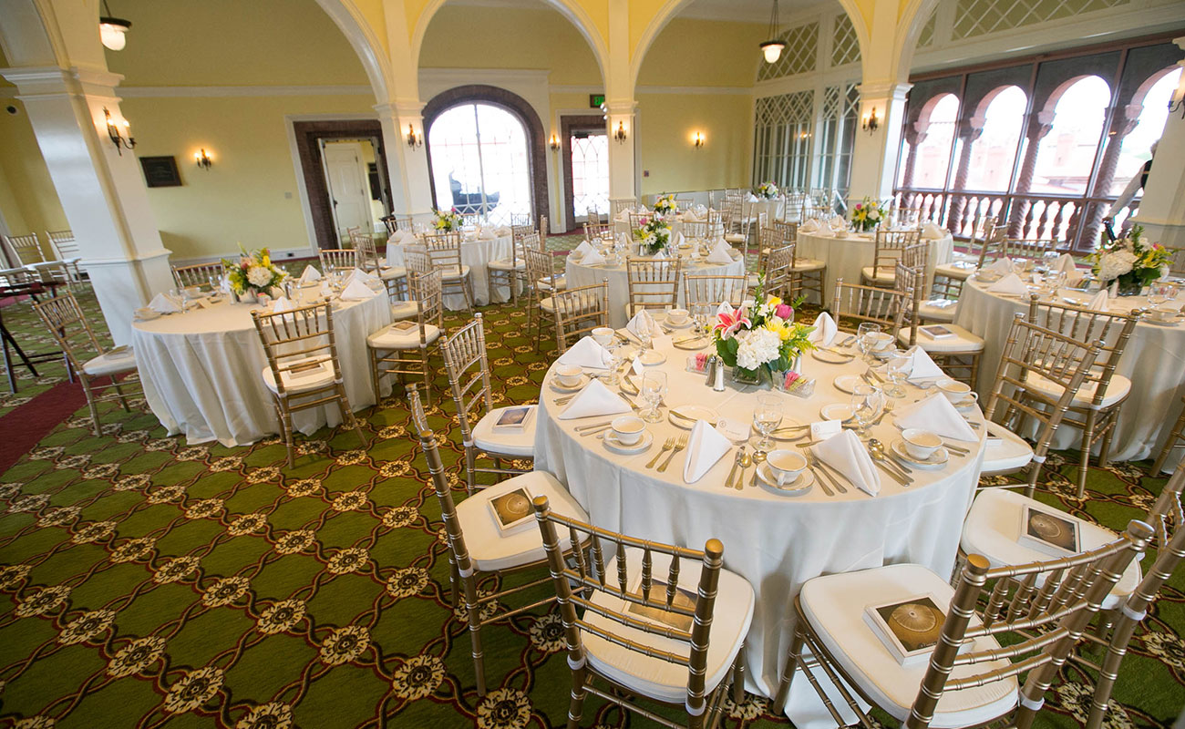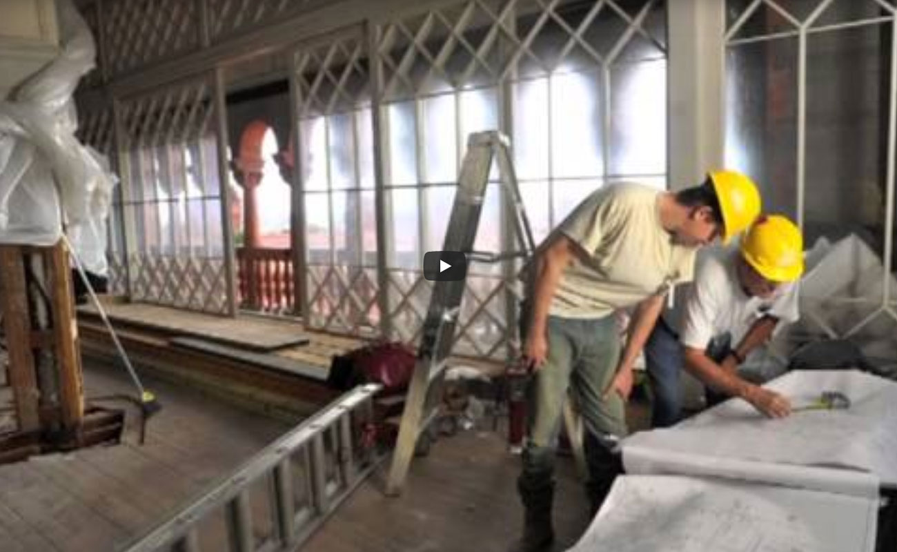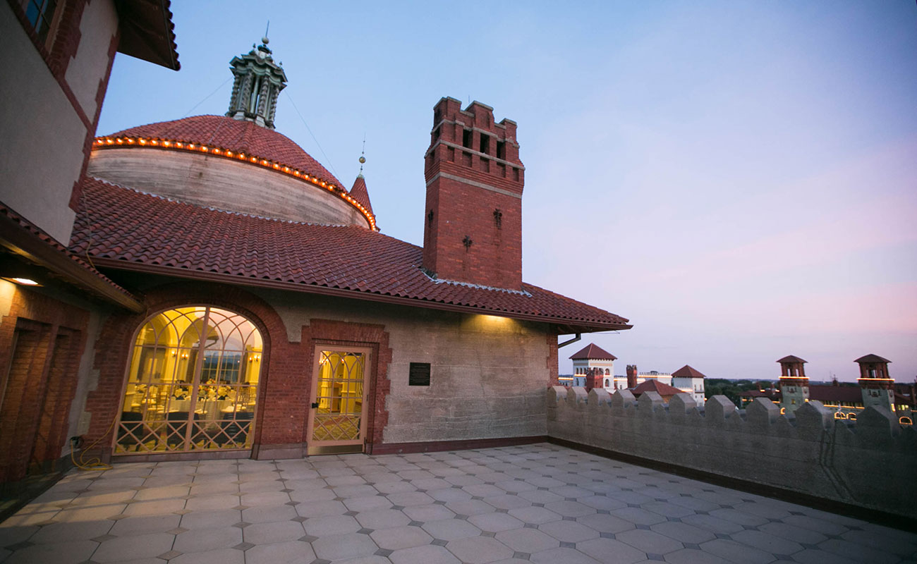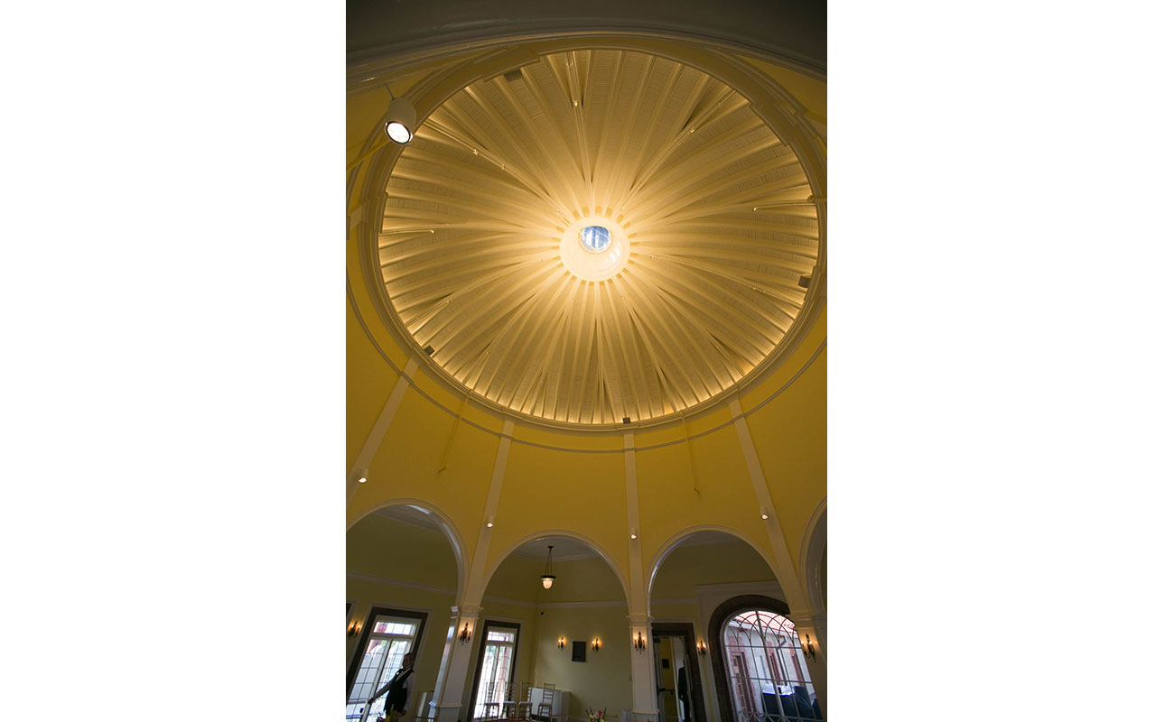 A.D. Davis restored the historic Solarium on the fourth floor of Flagler College in 2013. Last open in 1971, the room’s peeling walls, water damage and beaten woodwork were transformed in this $2.3 million renovation. The centerpiece of the Solarium is the ribbed vaulted rotunda with a skylight at the top supported by eight square columns. Sliding glass windows stream sunlight, brightening the 55×50 square foot room. The circular domed room overlooks the Courtyard as the Terraces offer views of Memorial Presbyterian Church, the town plaza, the Cathedral Basilica, the beaches, and the lighthouse.