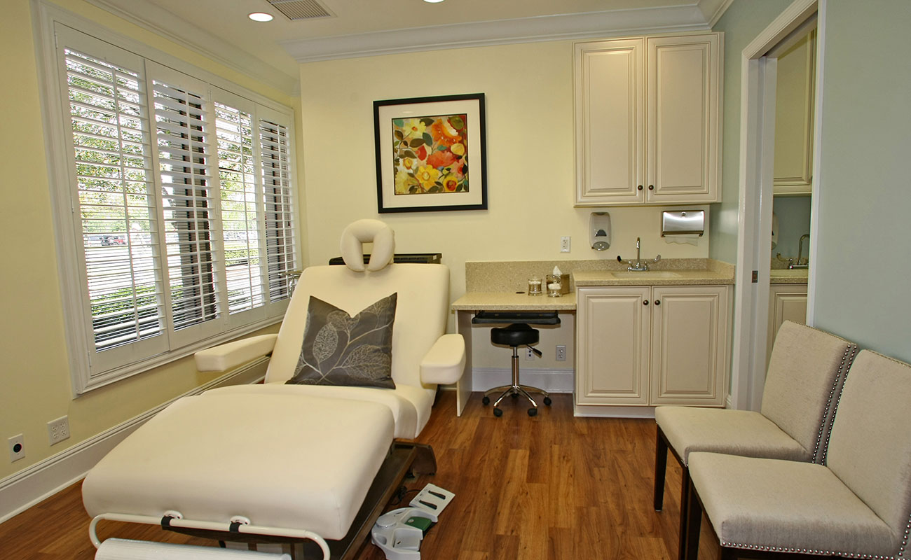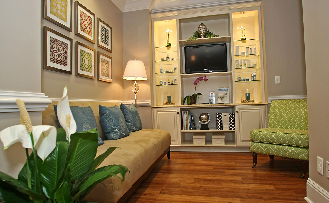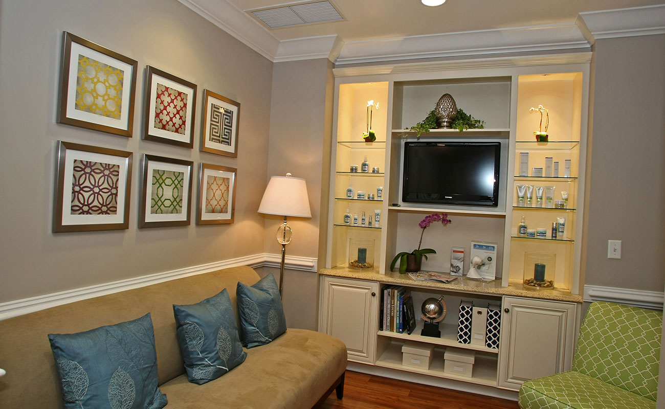 Turning two smaller spaces on St. Augustine’s Flagler Hospital campus into the now luxury Harmony Medical offices of plastic surgeon Dr. Anh Vu was far more than a cosmetic procedure. A.D. Davis Construction completed the 1,800 square foot renovation with an all-new electrical system, plumbing, paint, ceilings and flooring. Harmony Medical’s four patient rooms, two offices, restrooms, reception and waiting room might not seem out of the ordinary on paper, but the finishes make all the difference. Crown and chair-rail moldings, wall sconce lighting and dark hardwood floors create an environment more like a comfortable home. The waiting room feels like a family room in a high-end home. Granite countertops and custom cabinetry add to the ambience. Exam rooms are equipped with plush leather tables, a sound system to play soothing music and flat-screen TVs.